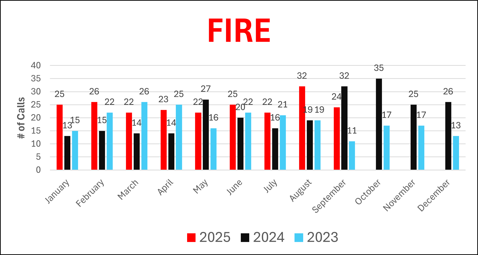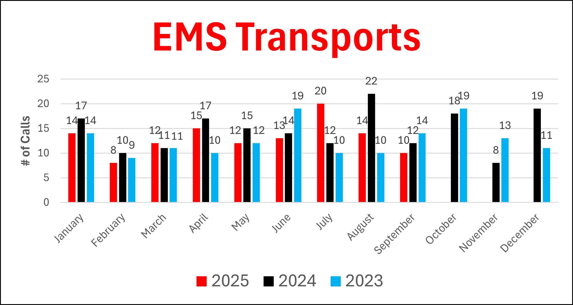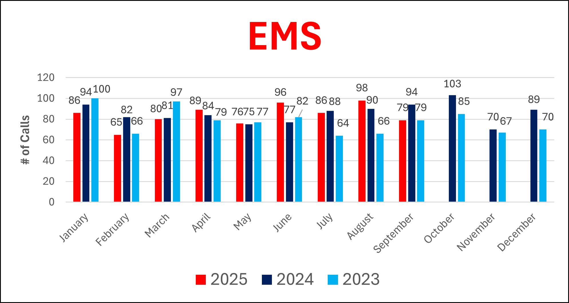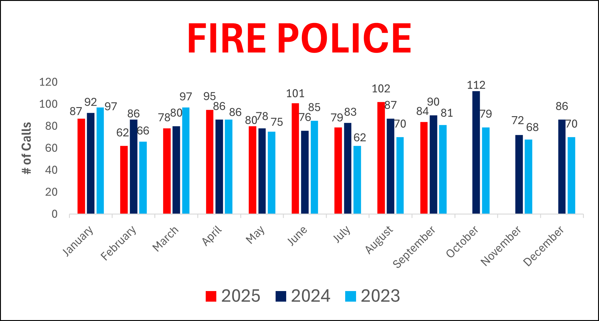 3-Year Call Data for Fire, EMS, EMS Transports and Fire Police as of 9.30.25