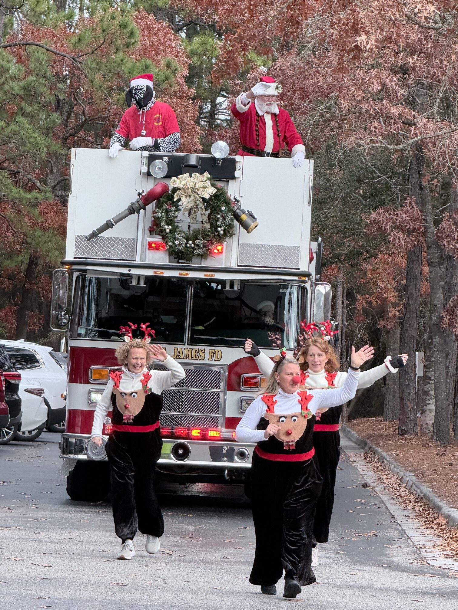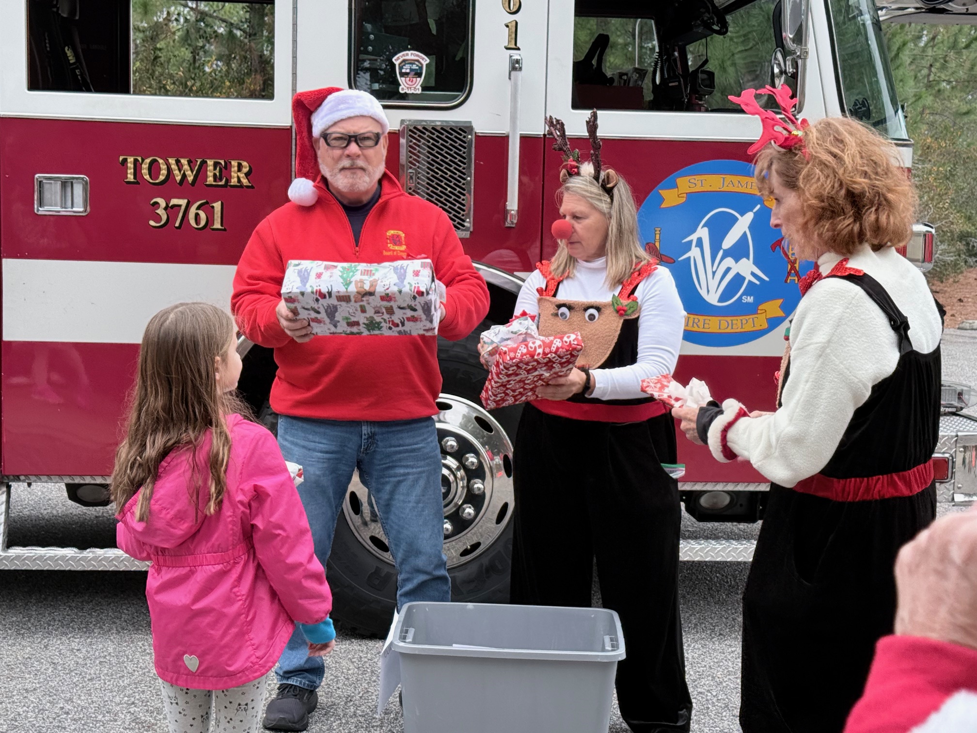 Santa came to St James and delivered presents to the good boys and girls!  Santa’s helpers included Sparky the dog, three reindeer, an elf and many others!